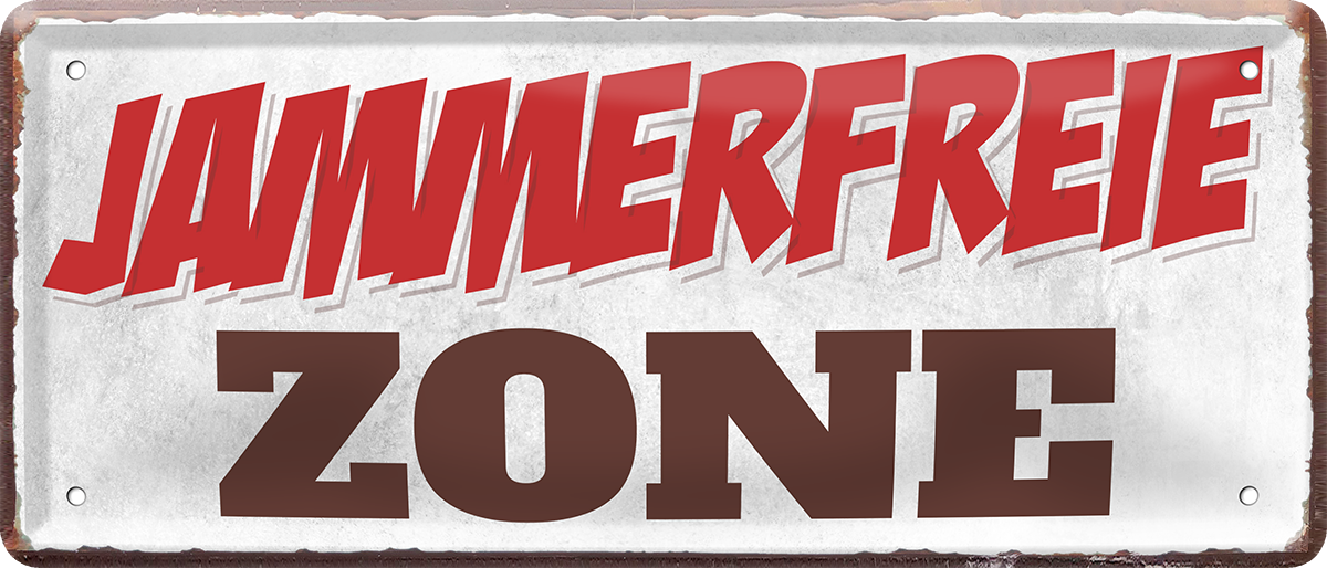 Blechschild ''Jammerfreie Zone (grau)'' 28x12cm