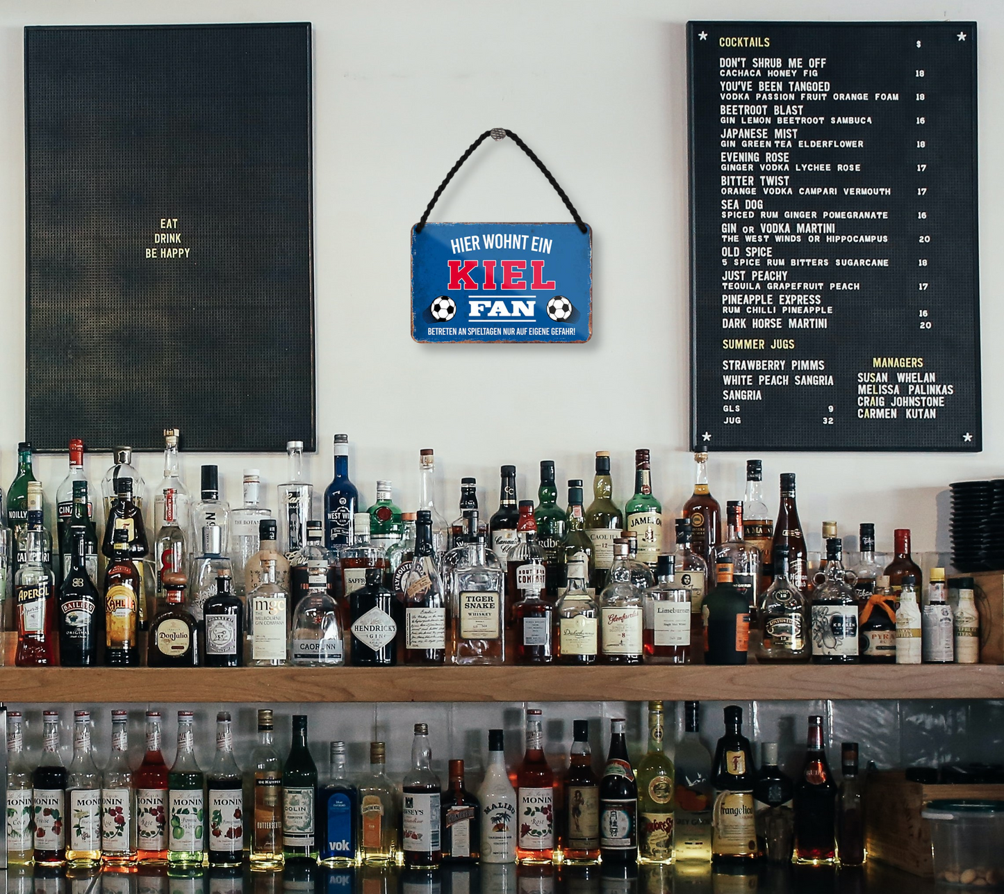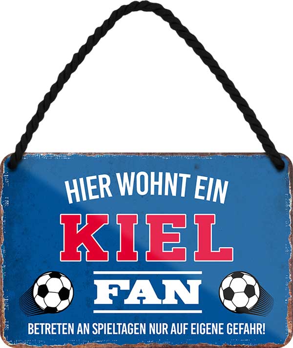Das Blechschild ''Kiel Fan'' ist aus einem qualitativ hochwertigen Blech mit abgerundeten und umgeschlagenen Kanten. Ideal für Liebhaber und Fans von "Fußball und Vereinen" und definitiv ein Hingucker für jedermanns Auge.