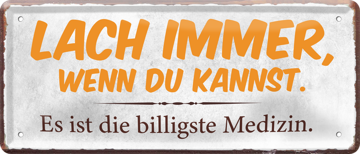 Blechschild ''Lach immer wenn du kannst billige Medizin'' 28x12cm
