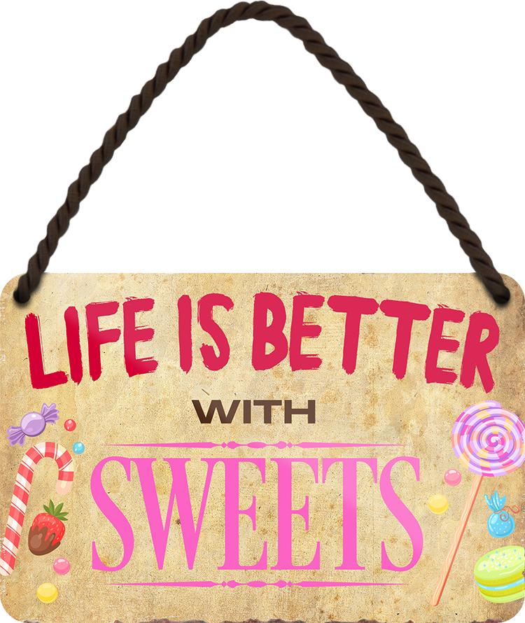 Das Blechschild ''Life is better Sweets'' ist aus einem qualitativ hochwertigen Blech mit abgerundeten und umgeschlagenen Kanten. Ideal für Liebhaber und Fans von "genüsslichem Essen und Getränken" und definitiv ein Hingucker für jedermanns Auge.