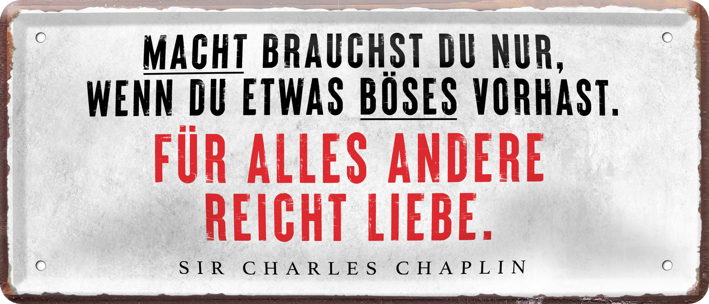 Blechschild ''Macht brauchst du nur wenn du böses vorhast'' 28x12cm