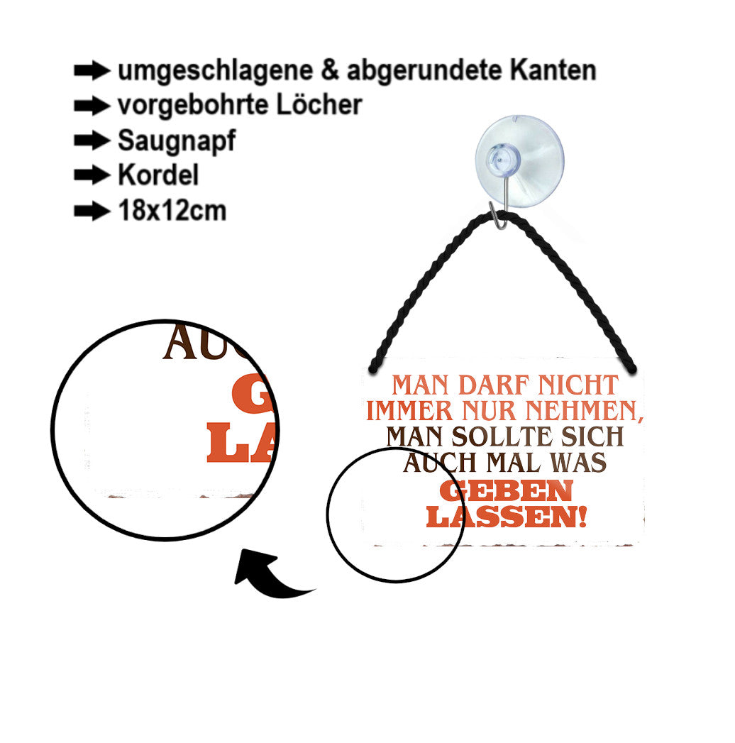Blechschild ''Man darf nicht immer nur nehmen. Geben lassen'' 18x12cm