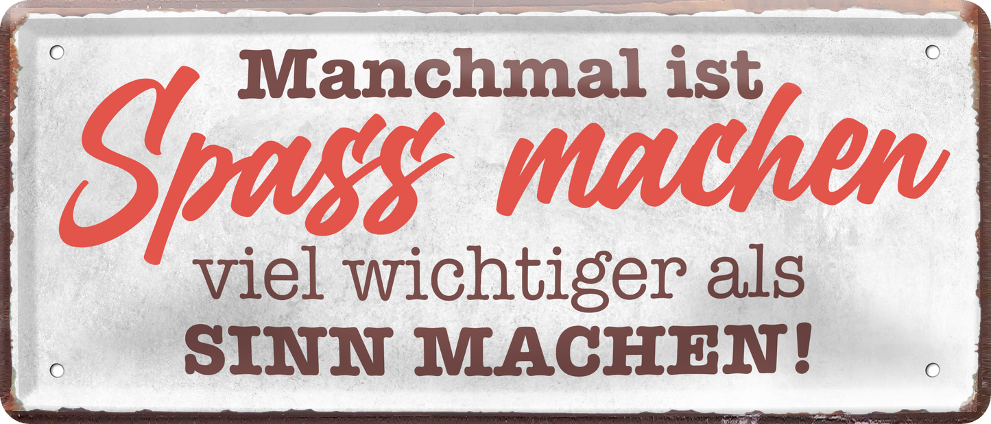 Blechschild ''Manchmal ist Spass machen wichtiger Sinn machen'' 28x12cm