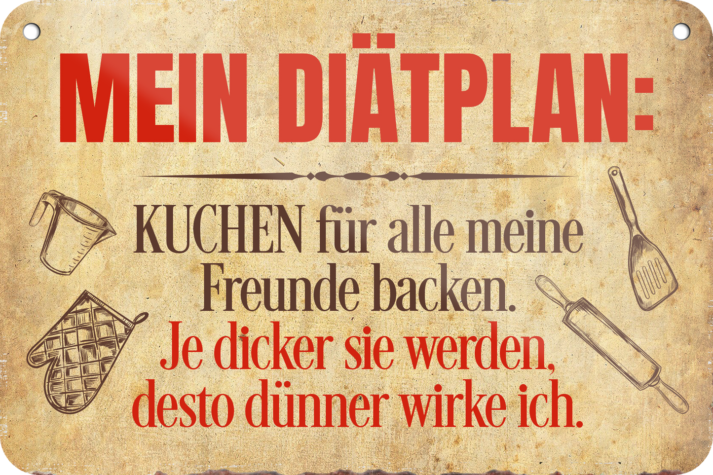 Blechschild ''Mein Diätplan Kuchen'' 18x12cm