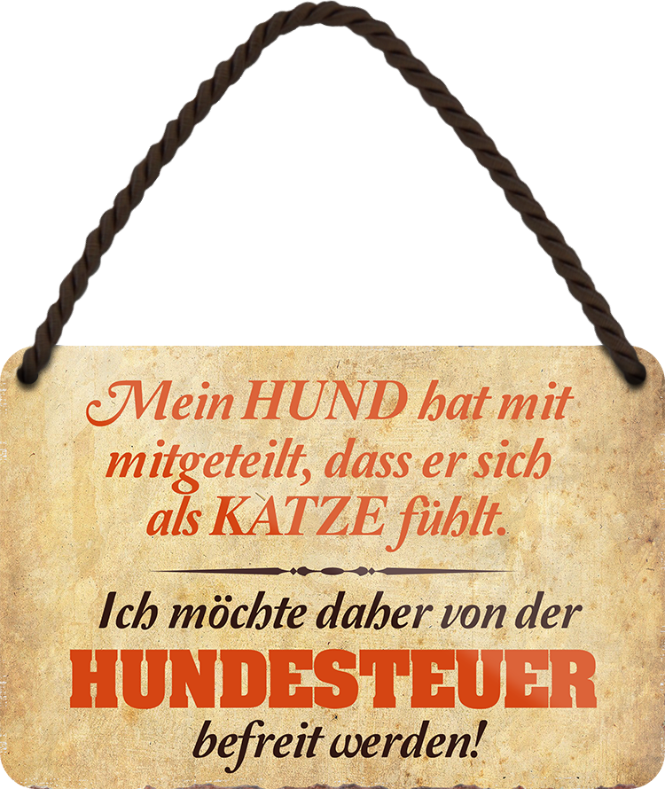 Blechschild ''Mein Hund hat mir mitgeteilt Katze (Braun)'' 18x12cm