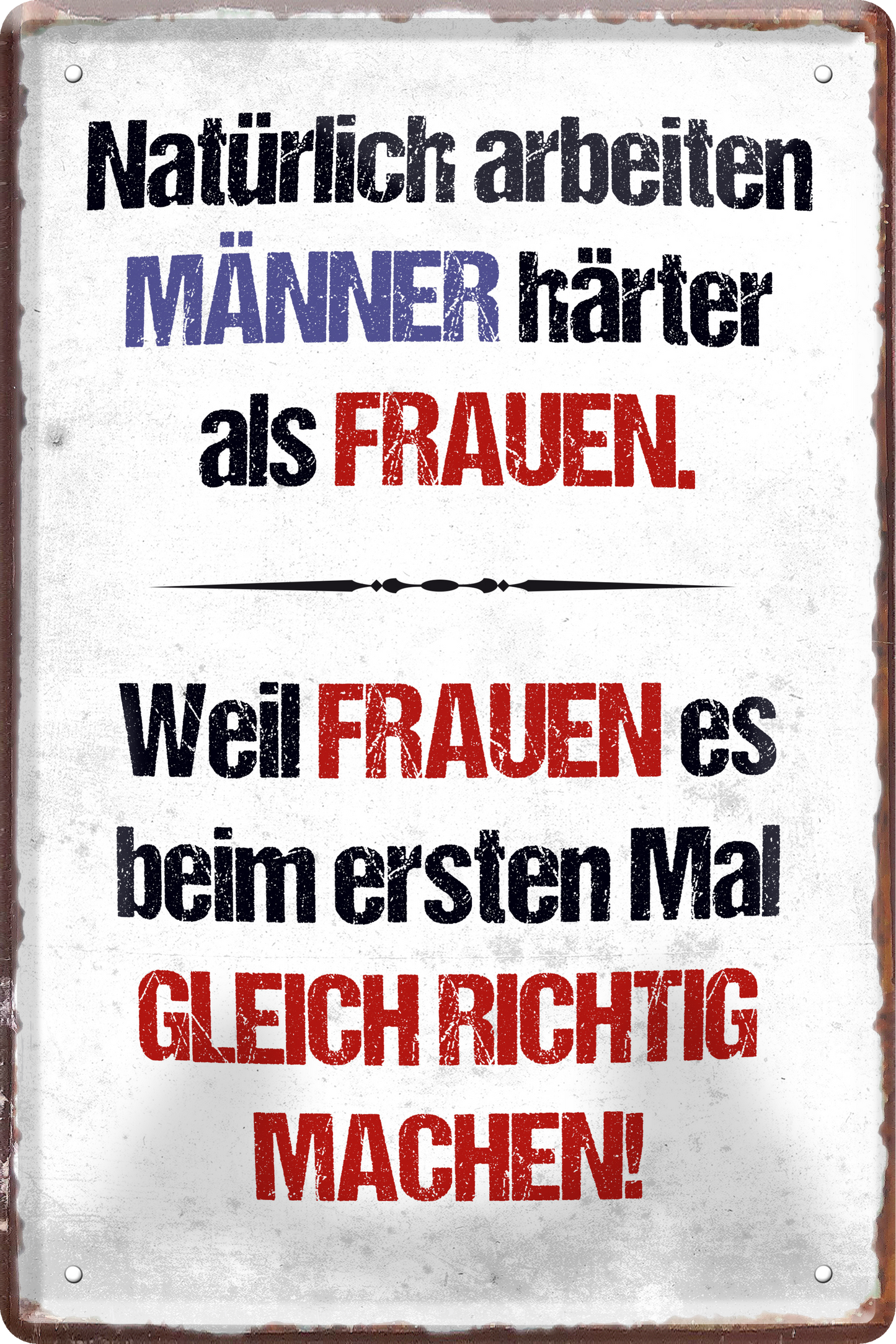 Blechschild ''Natürlich arbeiten Männer härter als Frauen'' 20x30cm
