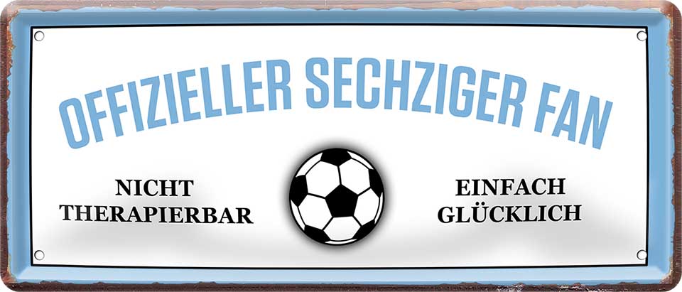 Das Blechschild ''Offizieller Sechziger Fan'' ist aus einem qualitativ hochwertigen Blech mit abgerundeten und umgeschlagenen Kanten. Ideal für Liebhaber und Fans von "Fußball und Vereinen" und definitiv ein Hingucker für jedermanns Auge.