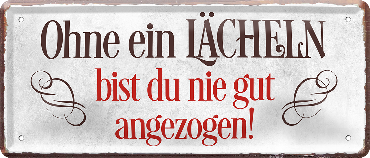 Blechschild ''Ohne ein Lächeln bist du nie gut'' 28x12cm