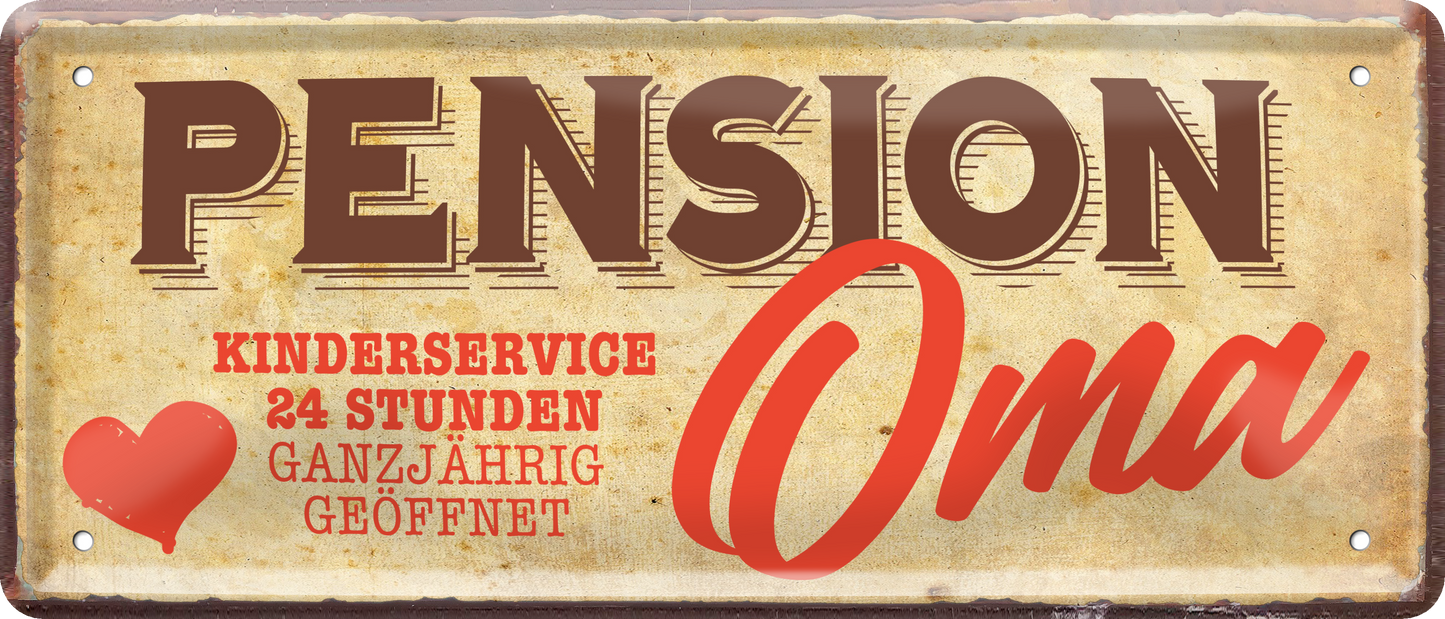Blechschild ''Pension Oma Kinderservice'' 28x12cm