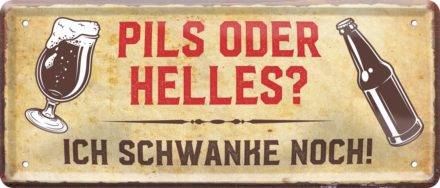 Blechschild ''Pils oder Helles ich schwanke noch'' 28x12cm
