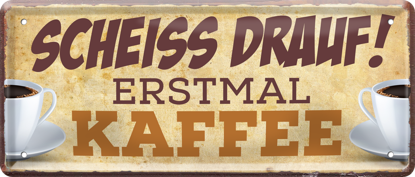 Blechschild ''Scheiss drauf! Erstmal Kaffee'' 28x12cm
