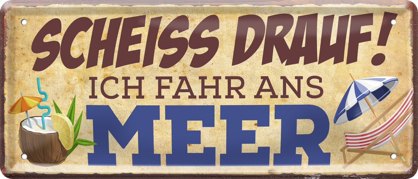 Blechschild ''Scheiss drauf! Ich fahr ans Meer'' 28x12cm