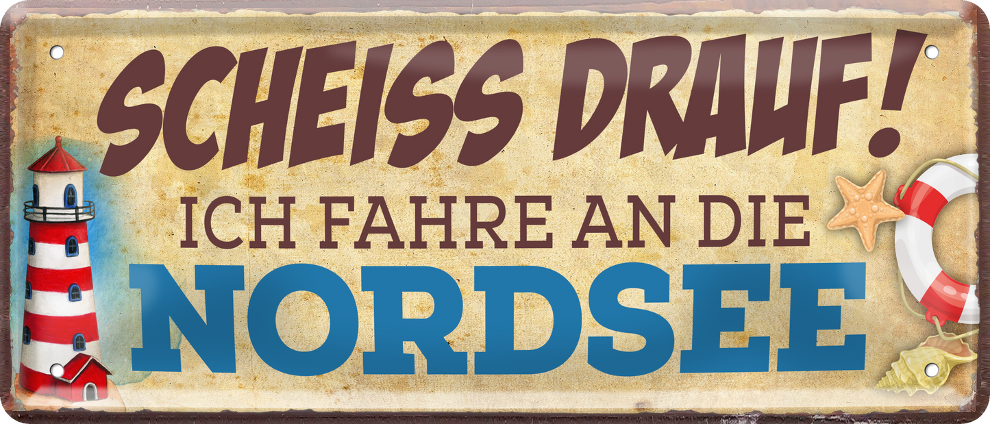 Blechschild ''Scheiss drauf! Ich fahre an die Nordsee'' 28x12cm