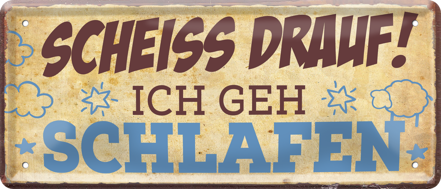 Blechschild ''Scheiss drauf! Ich geh schlafen'' 28x12cm