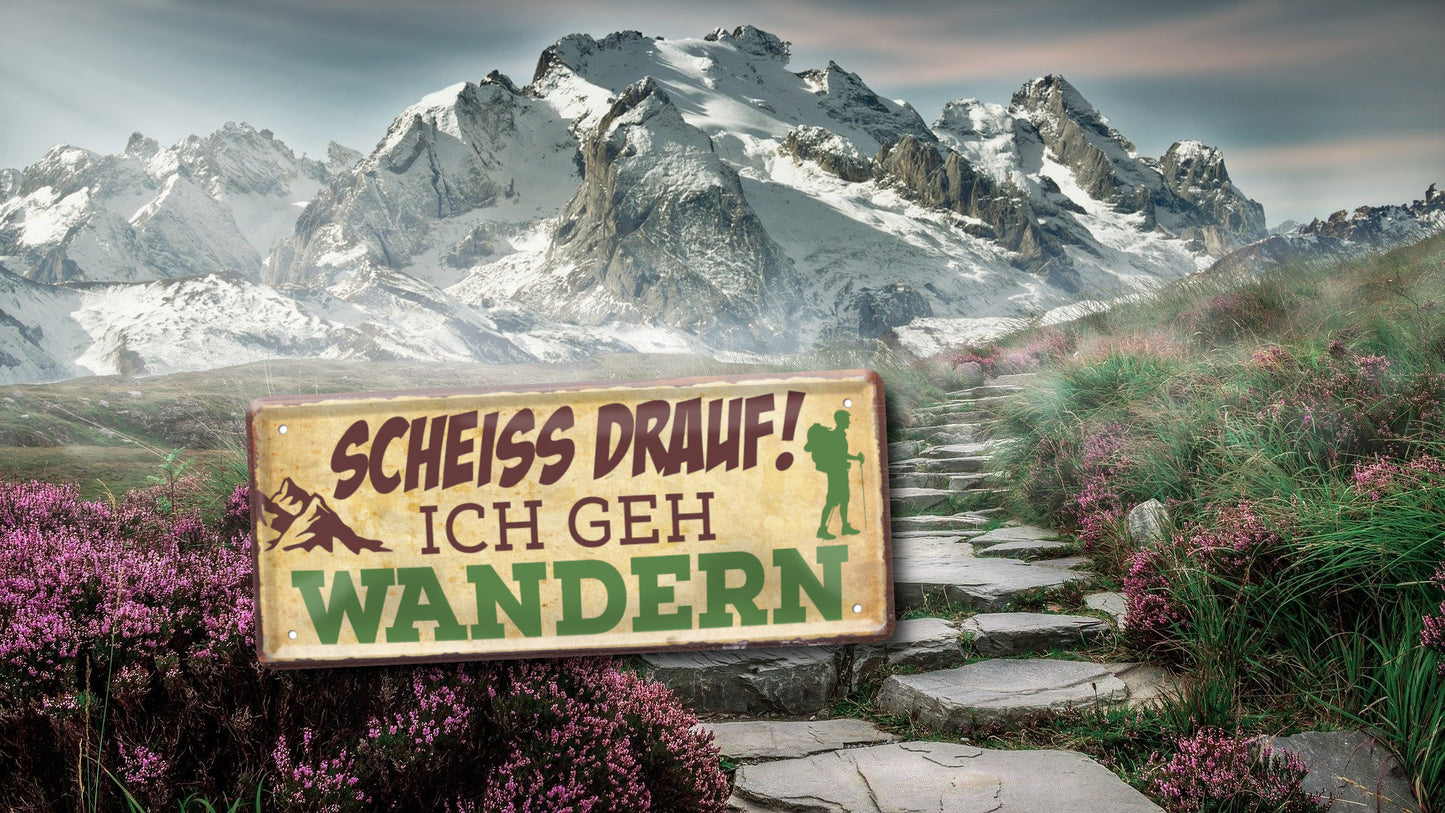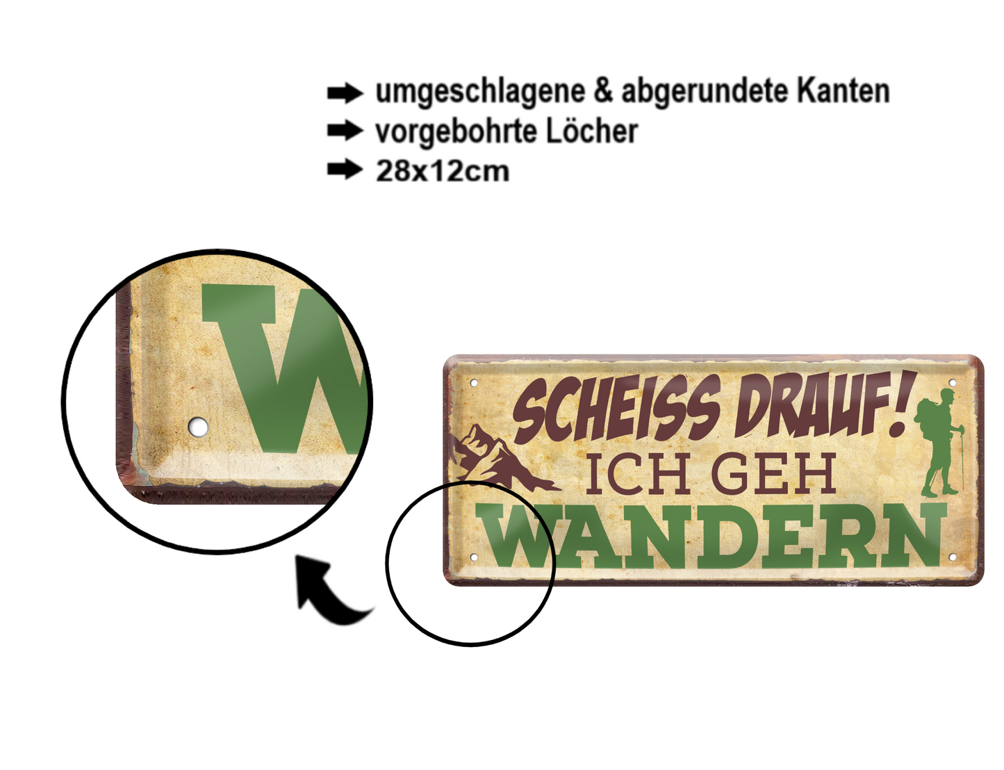 Blechschild ''Scheiss drauf! Ich geh Wandern'' 28x12cm