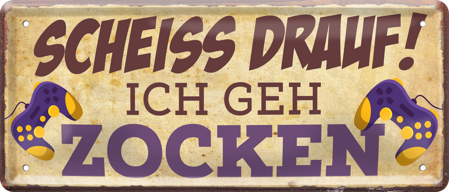 Blechschild ''Scheiss drauf! Ich geh Zocken'' 28x12cm