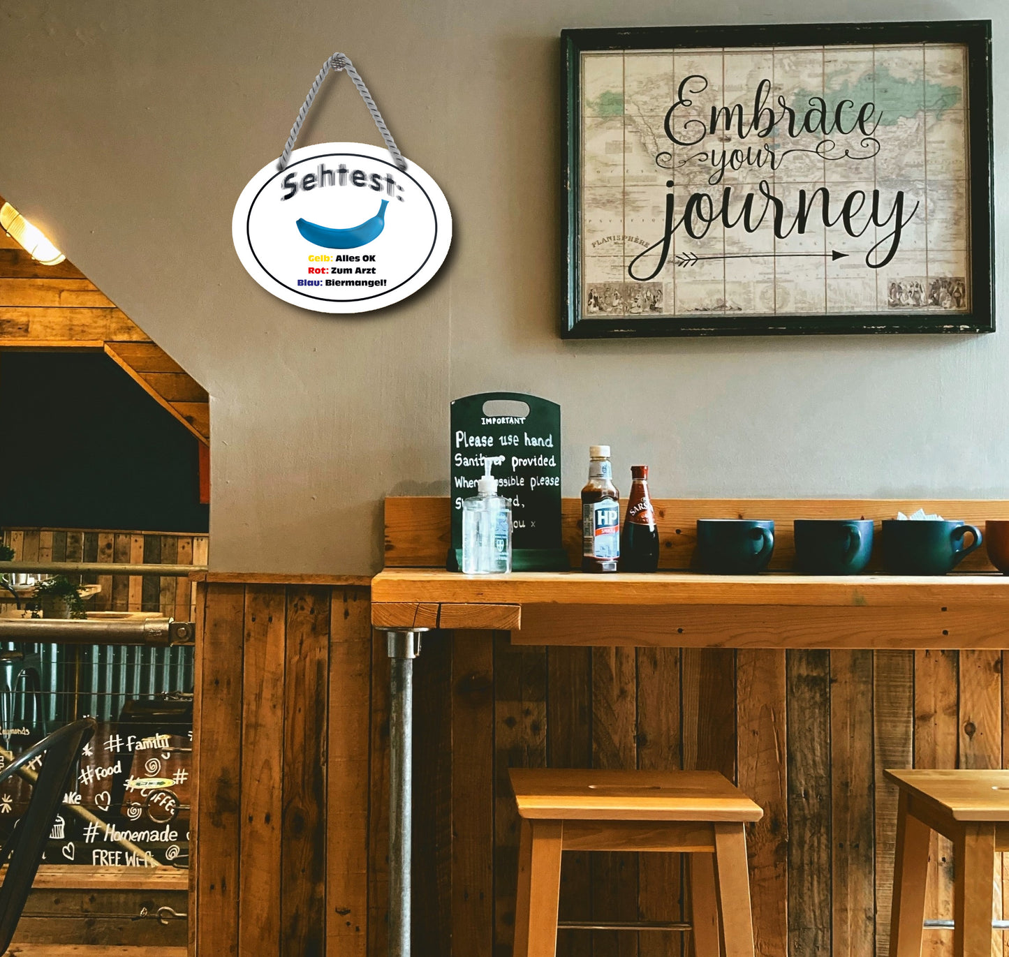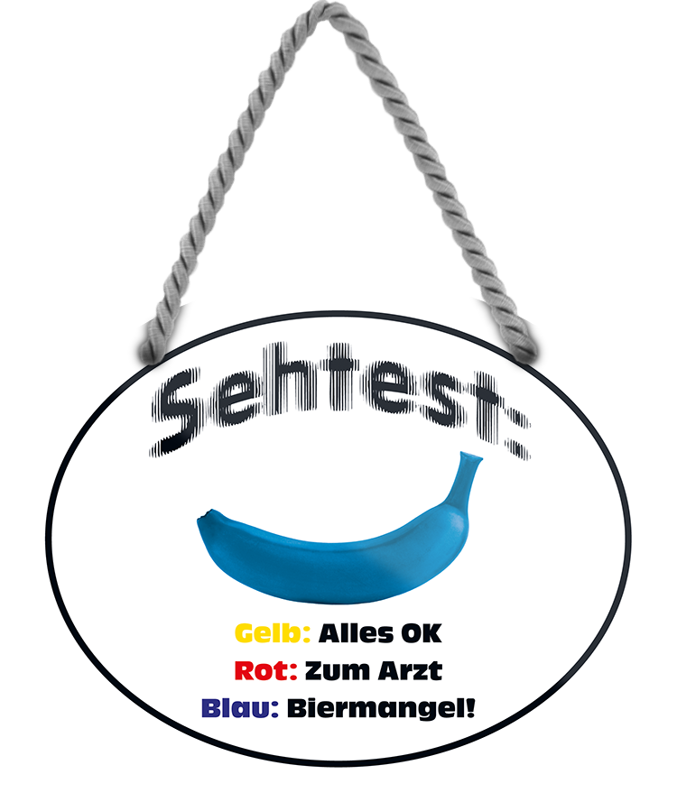 Das Blechschild ''Seh Test. Gelb alles gut, Blau Biermangel (weiß)'' ist aus einem qualitativ hochwertigen Blech mit abgerundeten und umgeschlagenen Kanten. Ideal für Liebhaber und Fans von "alkoholischen Getränken" und definitiv ein Hingucker für jedermanns Auge.