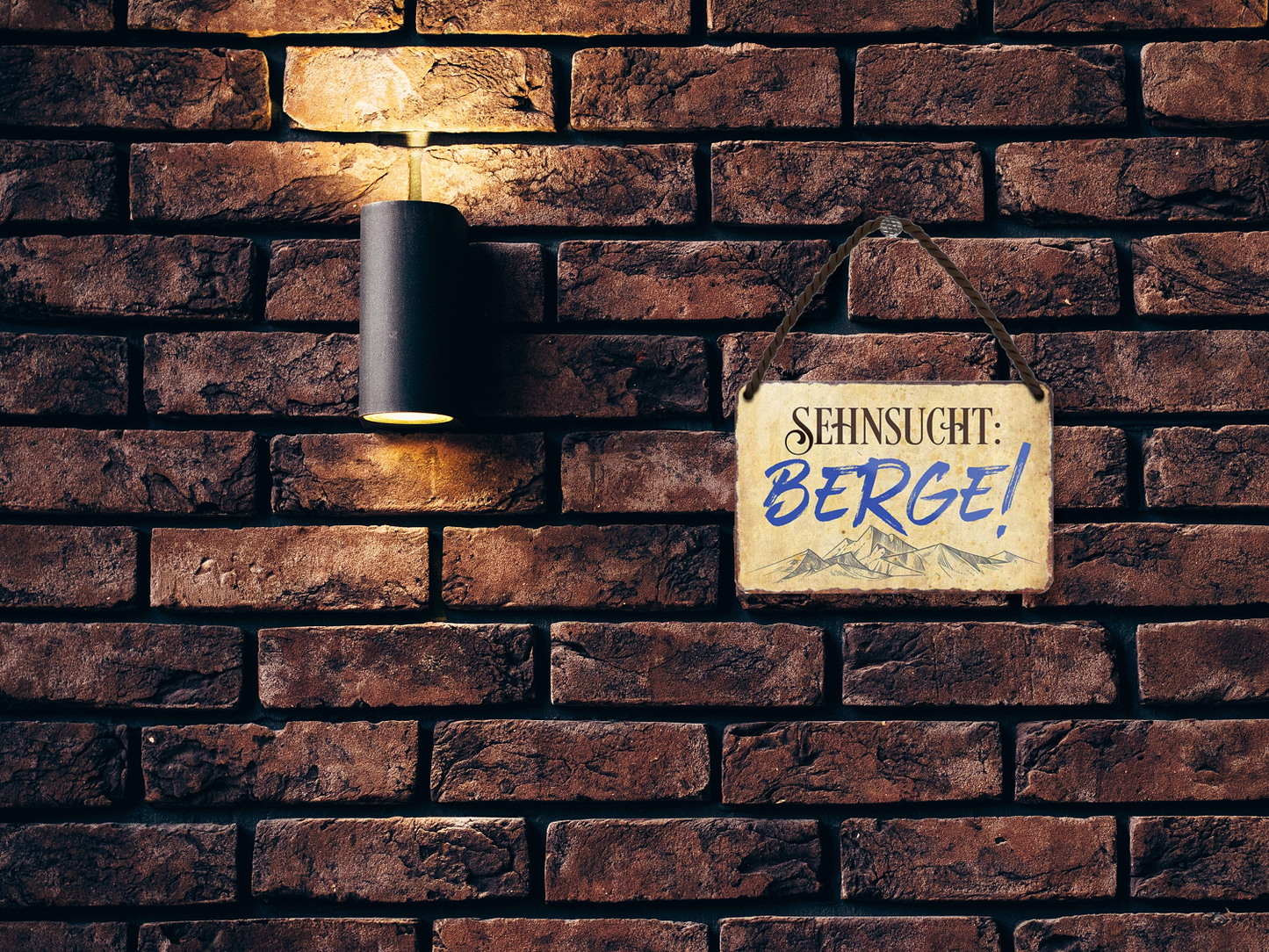 Das Blechschild ''Sehnsucht: Berge'' ist aus einem qualitativ hochwertigen Blech mit abgerundeten und umgeschlagenen Kanten. Ideal für Liebhaber und Fans von  „Bergen und Wandern“ und definitiv ein Hingucker für jedermanns Auge.