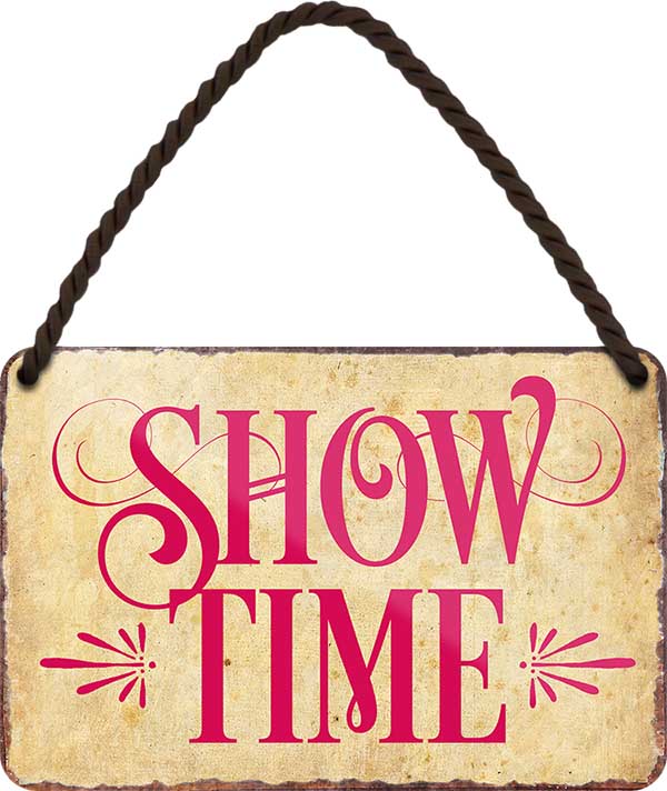 Das Blechschild ''Show Time'' ist aus einem qualitativ hochwertigen Blech mit abgerundeten und umgeschlagenen Kanten. Ideal für Liebhaber und Fans von ''ironischem und sarkastischem Humor'' und definitiv ein Hingucker für jedermanns Auge.