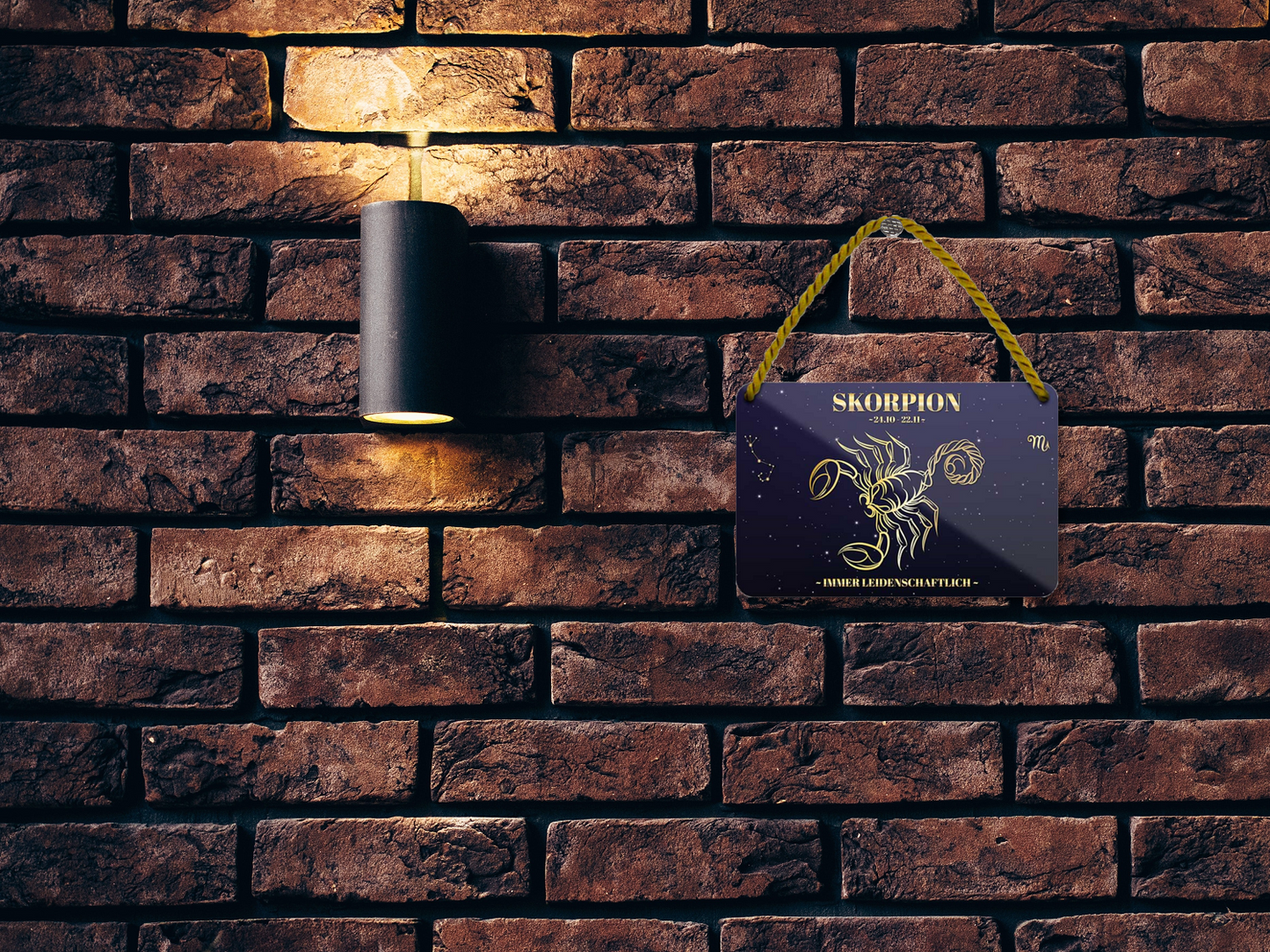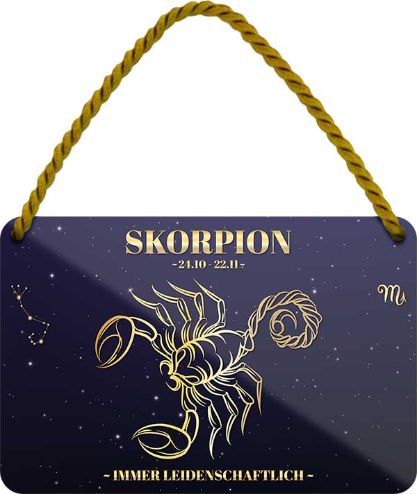 Das Blechschild ''Skorpion (schwarz gold)'' ist aus einem qualitativ hochwertigen Blech mit abgerundeten und umgeschlagenen Kanten. Ideal für Liebhaber und Fans von ''Astro und Sternzeichen'' und definitiv ein Hingucker für jedermanns Auge.