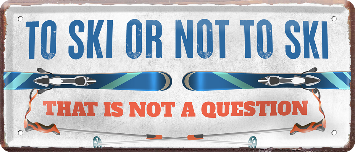 Blechschild ''To ski or not ski'' 28x12cm