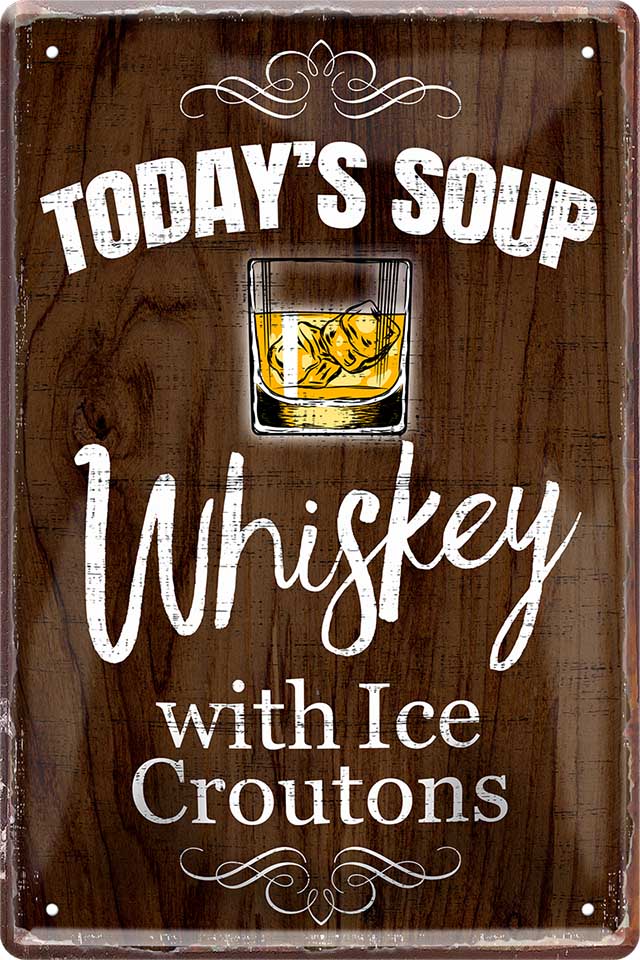 Blechschild ''Todays soup Whiskey'' 20x30cm