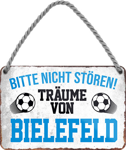 Das Blechschild ''Träume von Bielefeld'' ist aus einem qualitativ hochwertigen Blech mit abgerundeten und umgeschlagenen Kanten. Ideal für Liebhaber und Fans von "Fußball und Vereinen" und definitiv ein Hingucker für jedermanns Auge.
