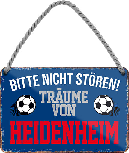 Das Blechschild ''Träume von Heidenheim'' ist aus einem qualitativ hochwertigen Blech mit abgerundeten und umgeschlagenen Kanten. Ideal für Liebhaber und Fans von "Fußball und Vereinen" und definitiv ein Hingucker für jedermanns Auge.