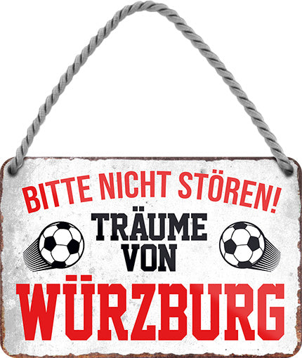 Das Blechschild ''Träume von Würzburg'' ist aus einem qualitativ hochwertigen Blech mit abgerundeten und umgeschlagenen Kanten. Ideal für Liebhaber und Fans von "Fußball und Vereinen" und definitiv ein Hingucker für jedermanns Auge.