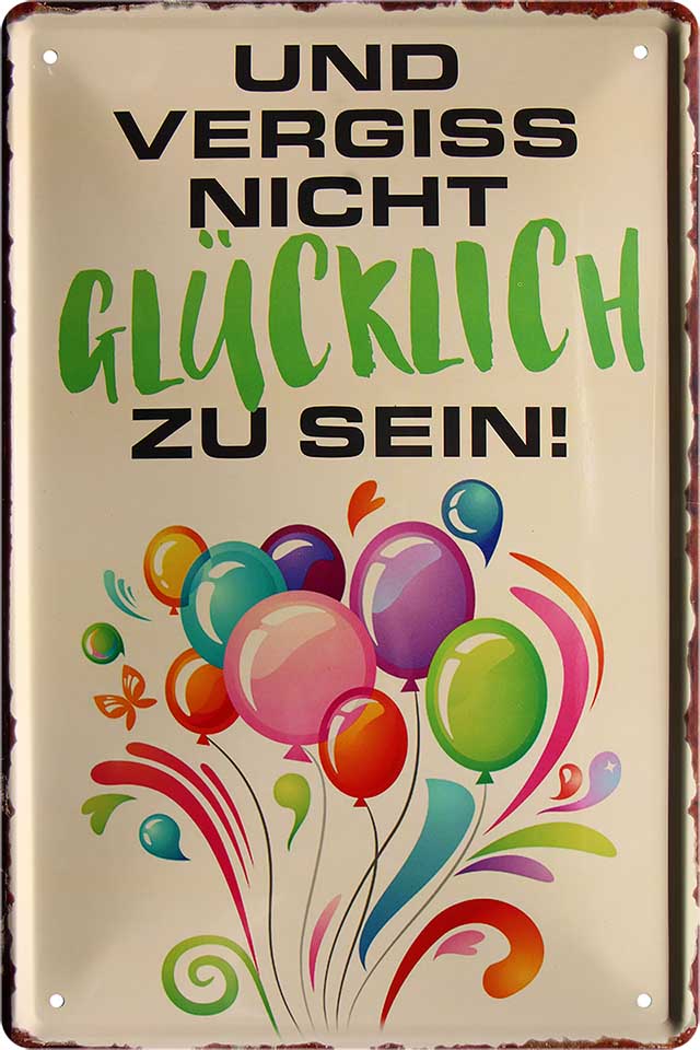 Blechschild ''Vergiss nicht Glücklich zu sein (Luftballons)'' 20x30cm
