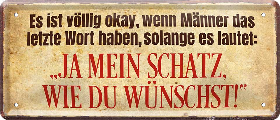 Blechschild ''Völlig okay, Männer letzte Wort haben.. Ja mein Schatz'' 28x12cm