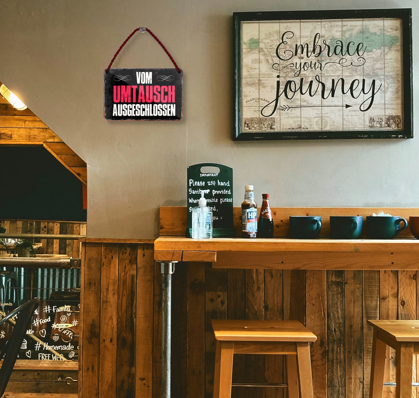 Blechschilder: Für den Innenbereich. Vermeiden Sie Feuchtigkeit und starke Sonneneinstrahlung.