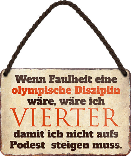 Blechschild ''Wenn Faulheit eine olympische Disziplin wäre (Braun)'' 18x12cm