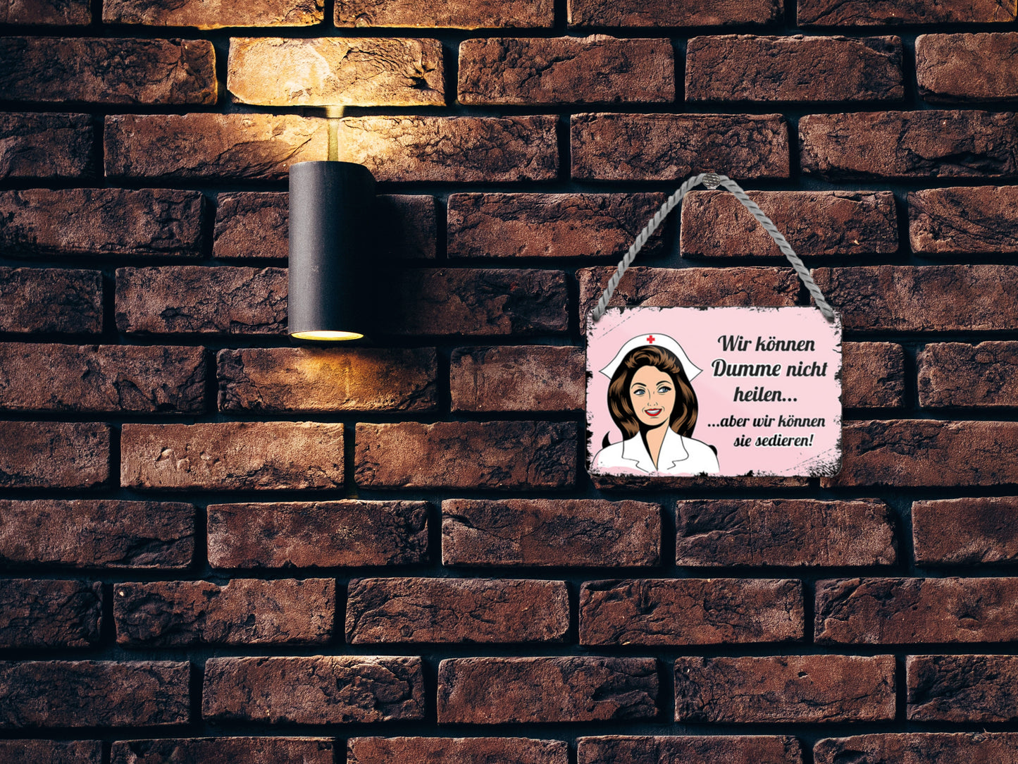 Blechschild ''Wir können dumme nicht heilen..'' 18x12cm