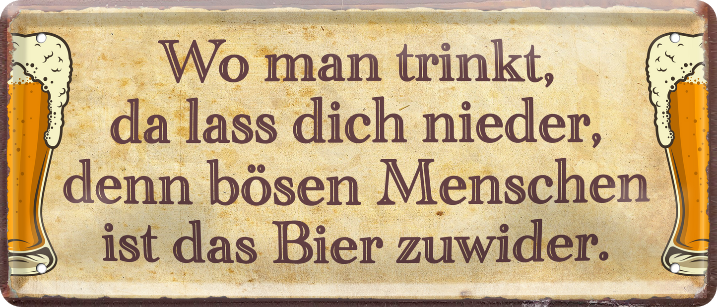 Blechschild ''Wo man trinkt da lass dich nieder'' 28x12cm
