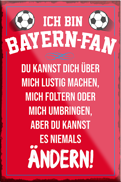 Der Super-Magnet ''Bayern Fan'' ist aus einem langlebigen Metall mit qualitativ hochwertiger Oberfläche. Ideal für Liebhaber und Fans von "Fußball und Vereinen" und definitiv ein Hingucker für jedermanns Auge.