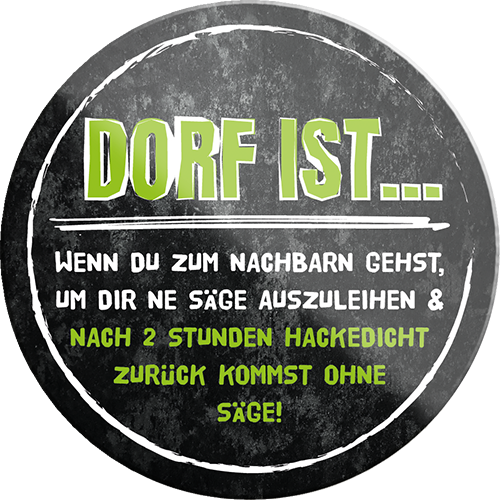 Der Super-Magnet ''Dorf ist wenn du zum Nachbarn gehst'' ist aus einem langlebigen Metall mit qualitativ hochwertiger Oberfläche. Ideal für Liebhaber und Fans von ''gemeinschaftlichem Dorfleben" und definitiv ein Hingucker für jedermanns Auge.