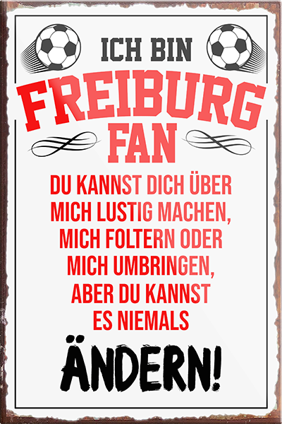 Der Super-Magnet ''Freiburg Fan (rote schrift)'' ist aus einem langlebigen Metall mit qualitativ hochwertiger Oberfläche. Ideal für Liebhaber und Fans von "Fußball und Vereinen" und definitiv ein Hingucker für jedermanns Auge.