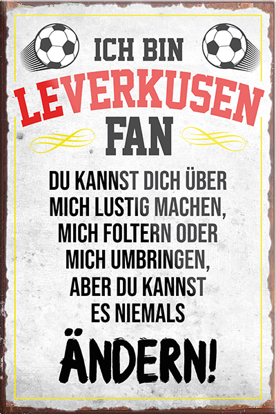 Der Super-Magnet ''Leverkusen Fan'' ist aus einem langlebigen Metall mit qualitativ hochwertiger Oberfläche. Ideal für Liebhaber und Fans von "Fußball und Vereinen" und definitiv ein Hingucker für jedermanns Auge.