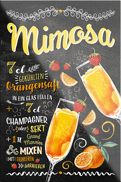 Der Super-Magnet ''Mimosa'' ist aus einem langlebigen Metall mit qualitativ hochwertiger Oberfläche. Ideal für Liebhaber und Fans von "alkoholischen Getränken" und definitiv ein Hingucker für jedermanns Auge.