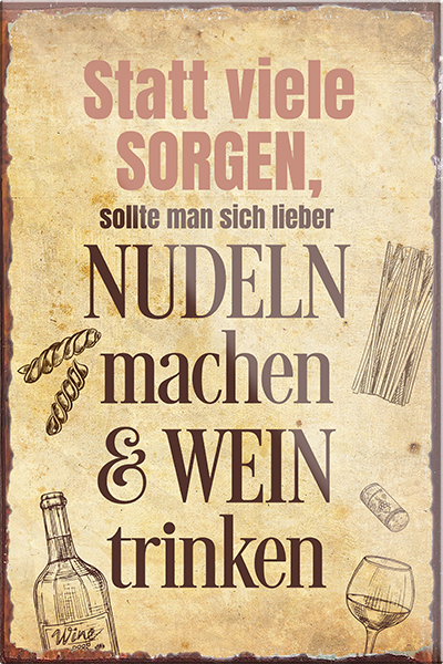 Magnet ''Statt viele Sorgen lieber Nudeln Wein'' 9x6x0,3cm
